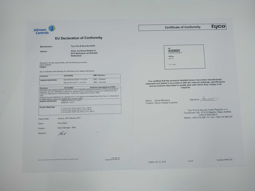 The FV421I Intrinsically Safe IR Flame Detectors are intended for applications demanding a high level of protection where a rapid response to fire is important within Exia zoned areas.