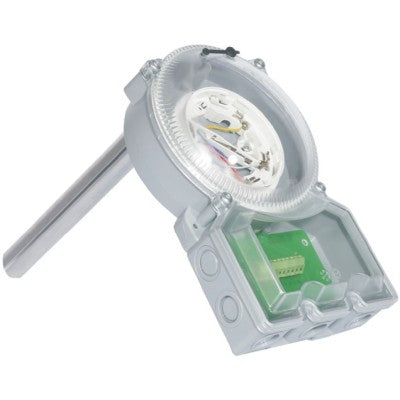 The Tyco DPK6 duct probe units (517.025.056) smoke detectors are not typically installed directly inside ducts because the airflow only permits the detector to sample air from a small section of the duct, leading to rapid dirt accumulation. Instead, ducting is safeguarded by the use of probe units, which collect air from a cross-section of the duct and pass it through a smoke detector head.